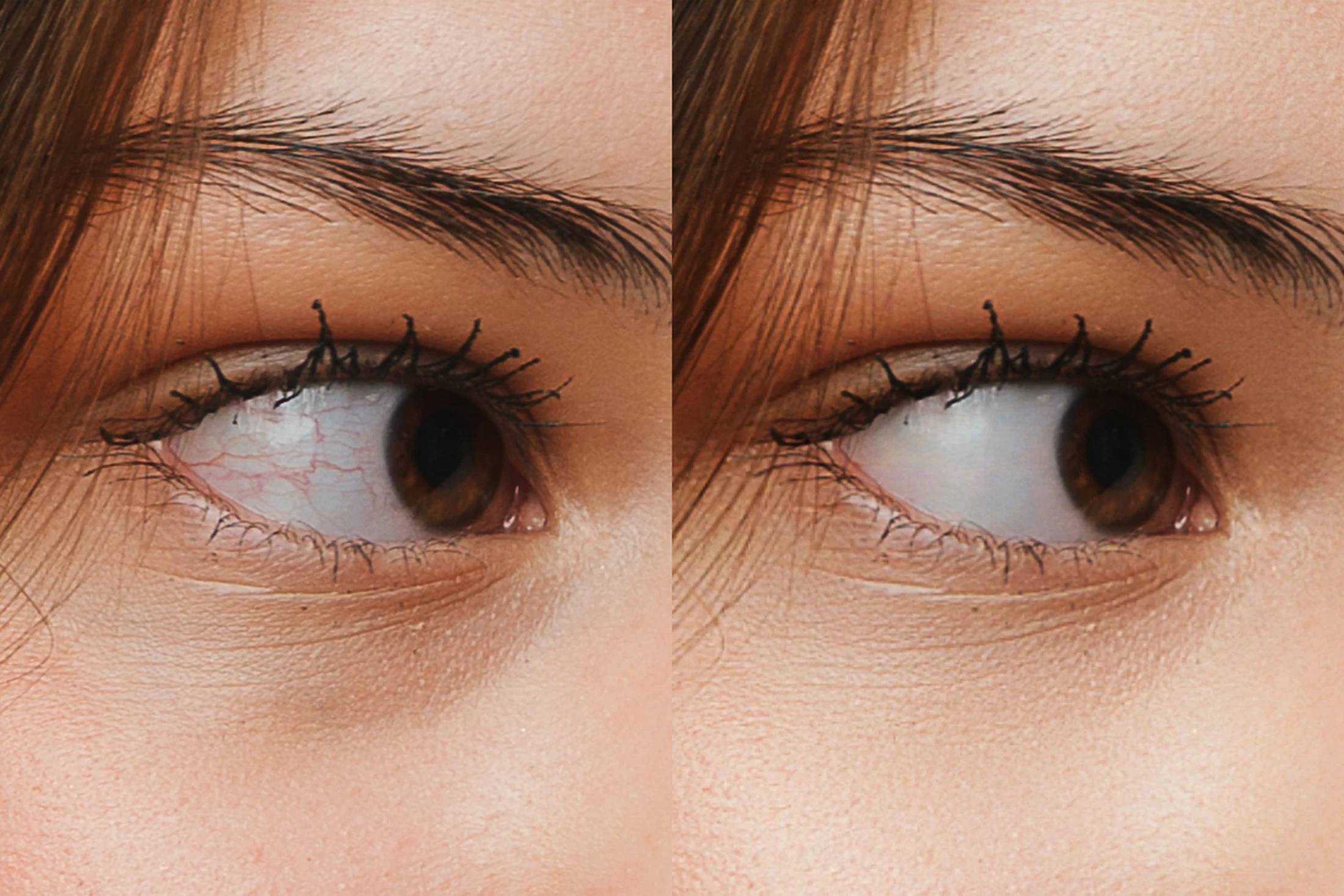 Убираем “венозность” глаз. Делаем глаза аккуратно белыми — как в журналах